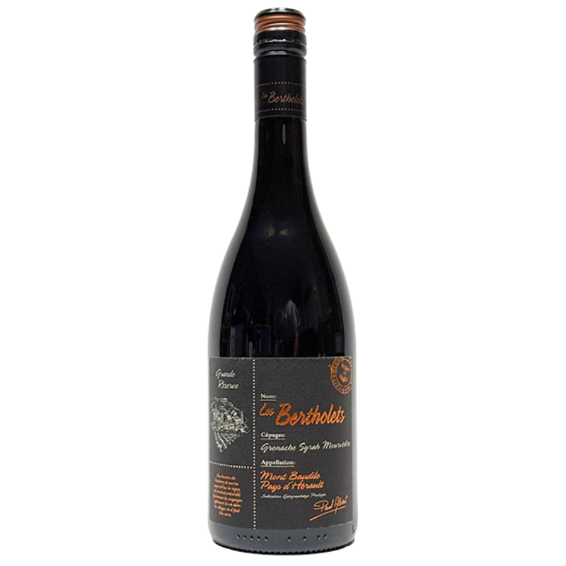 Les Bertholets Grande Reserve GSM is een aromatische rode wijn uit de Languedoc in Zuid-Frankrijk, gemaakt van het klassieke GSM-trio: Grenache, Syrah en Mourvèdre. De wijn heeft een diepe robijnrode kleur met een lichtpaarse rand, die rijkdom en frisheid direct zichtbaar maakt.